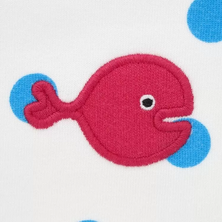 These cute pajamas are appliquéd with a goldfish from Taro Gomi’s classic picture book “Where’s the Fish?”. The world of the picture book is expressed in the search for a goldfish that has escaped from a goldfish bowl.