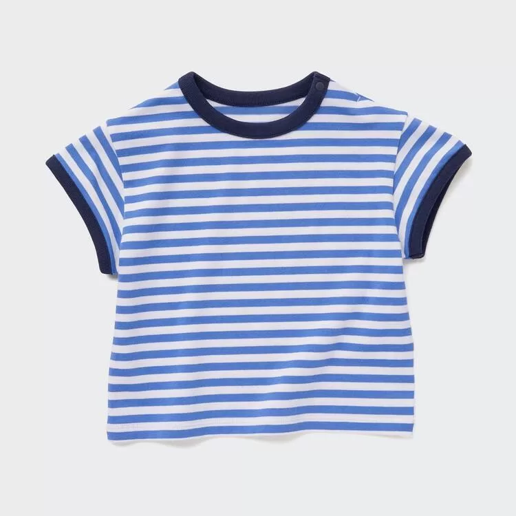 Uniqlo Dry Striped Crew Neck Short Sleeved Baby T-Shirt Blue