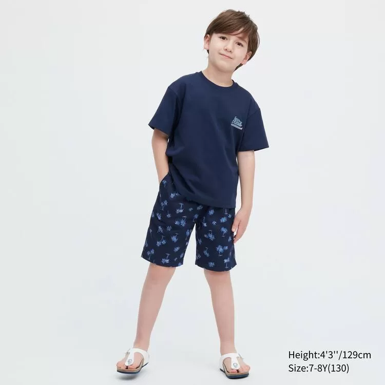 Uniqlo Airism Cotton Printed Short Sleeved T-shirt for Kids Navy Blue