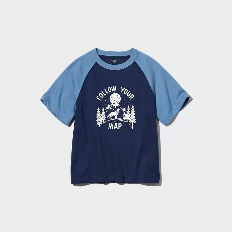 Uniqlo Airism Cotton Printed Short Sleeved T-shirt for Kids Navy Blue