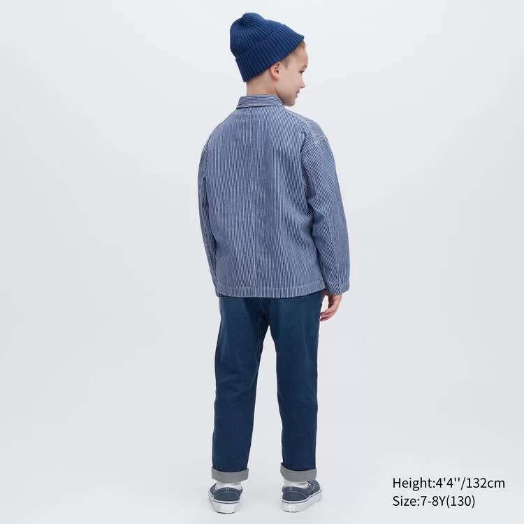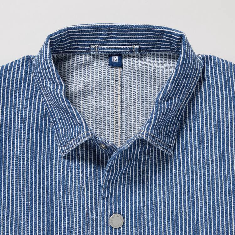 – Hickory stripe fabric for a workwear style.