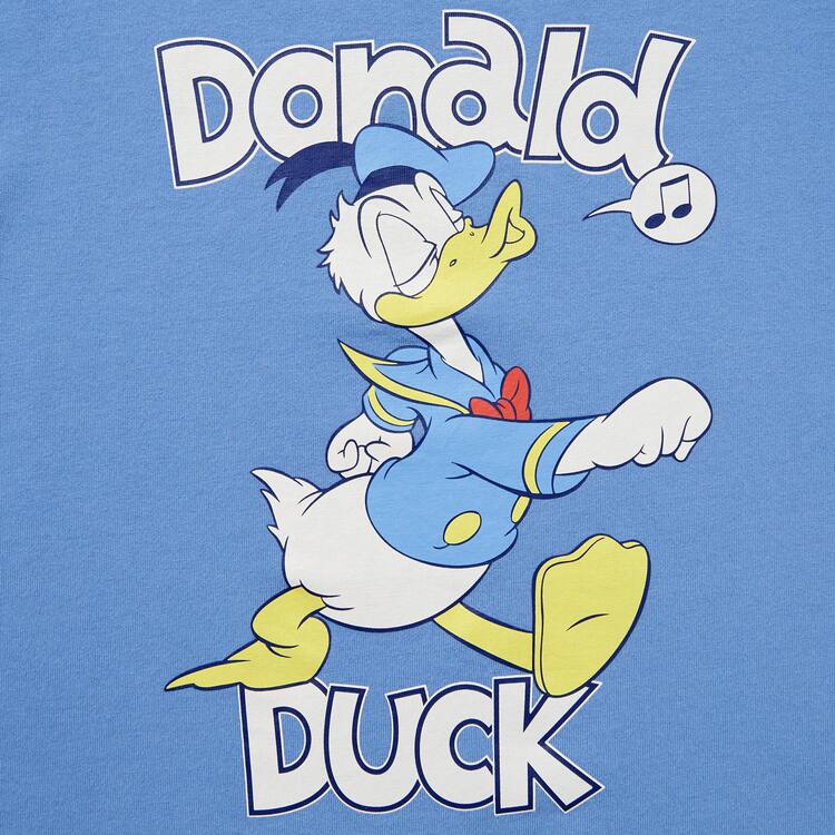 Description:< Large Donald Duck print. Inspired by T-shirts you might discover at vintage clothing shops. Ringer style T-shirt for a vintage look.