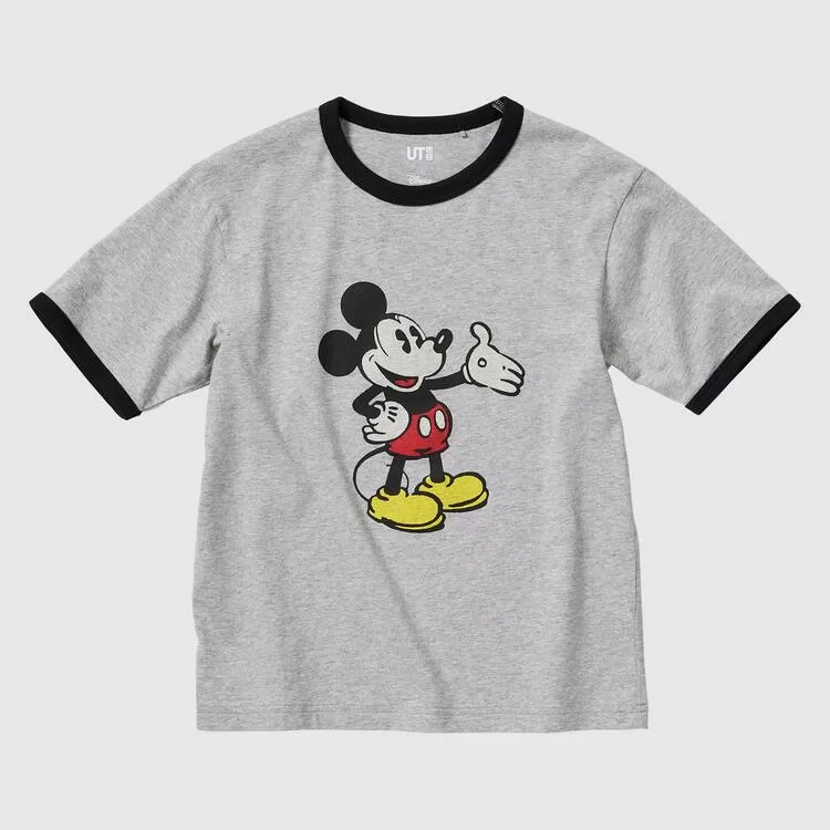 Description:< br>Mickey Mouse design in vivid colors with a distinctive fade achieved using a special printing technique. Ringer style T-shirt for a vintage look.