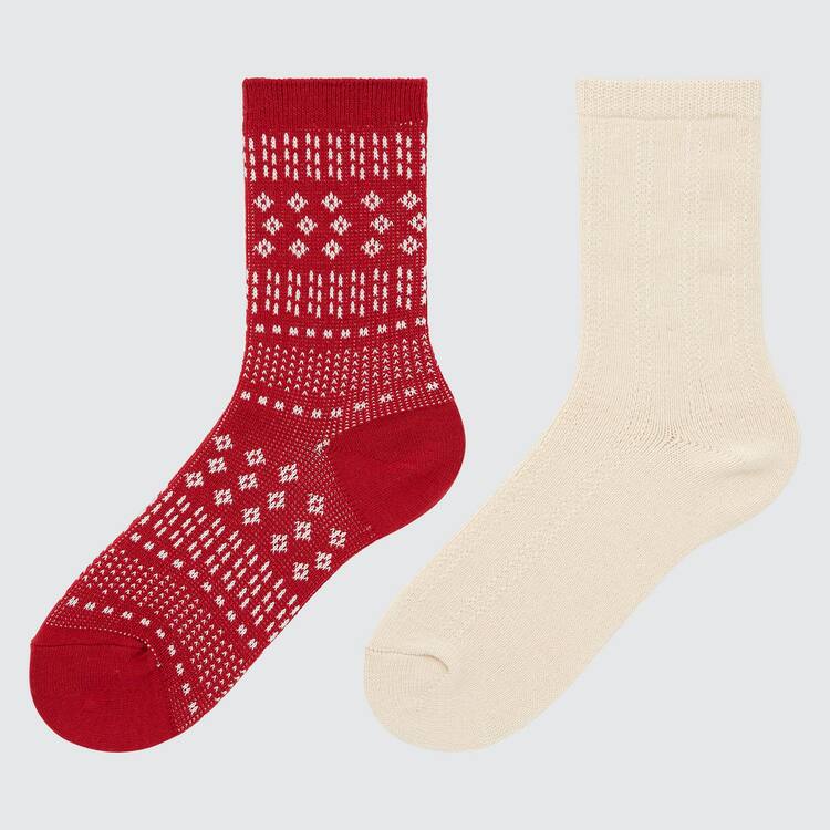 -2-pair set, one with a cute Fair Isle pattern and the other in a solid color.