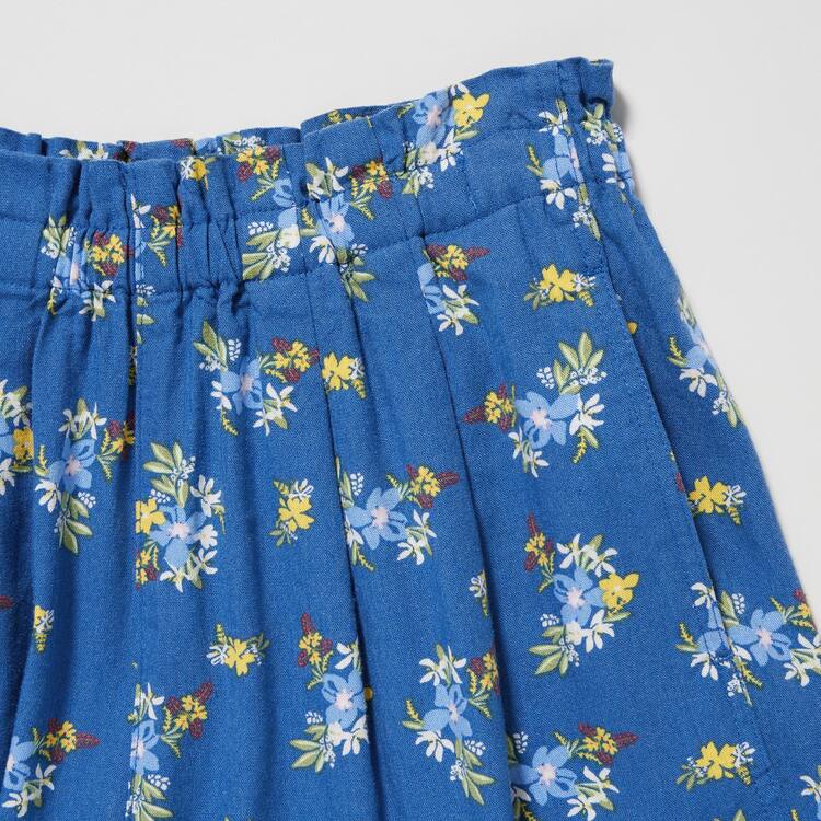 Uniqlo Linen Blend Flower Print Easy Boys Shorts Blue