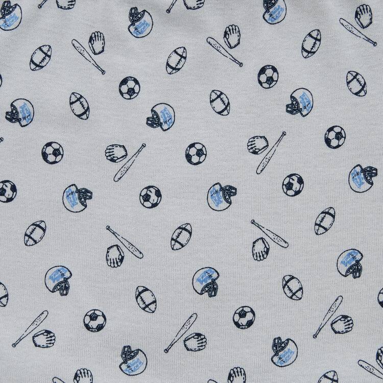 – 3-pair set of bright solid colors and sports motif patterns including baseball, soccer, and rugby.