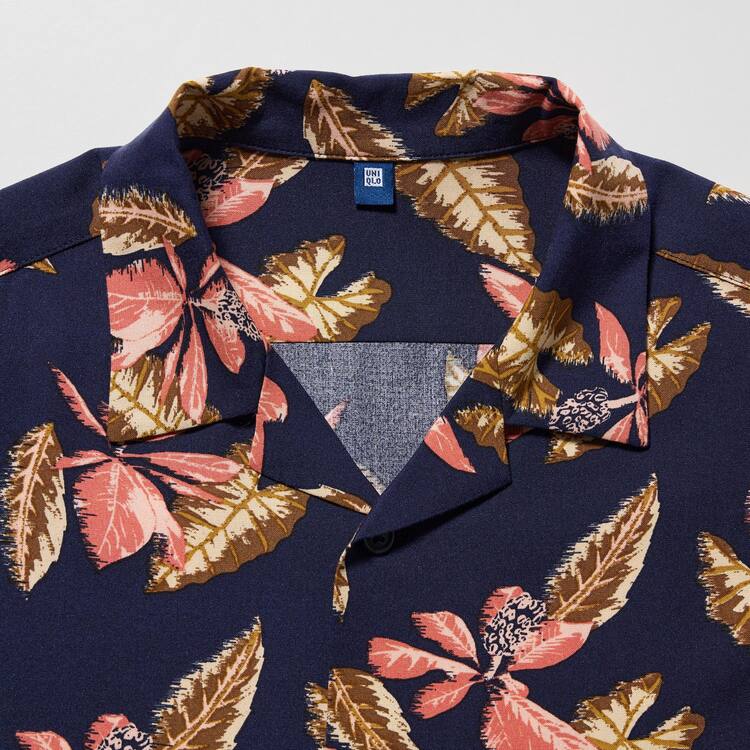 Uniqlo Viscose Printed Open Collar Short Sleeved Boys Shirts Navy Blue