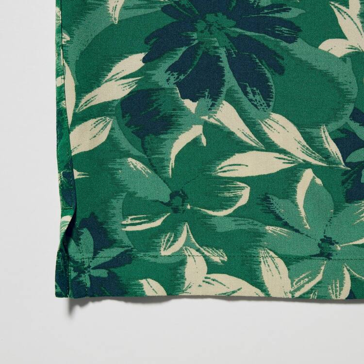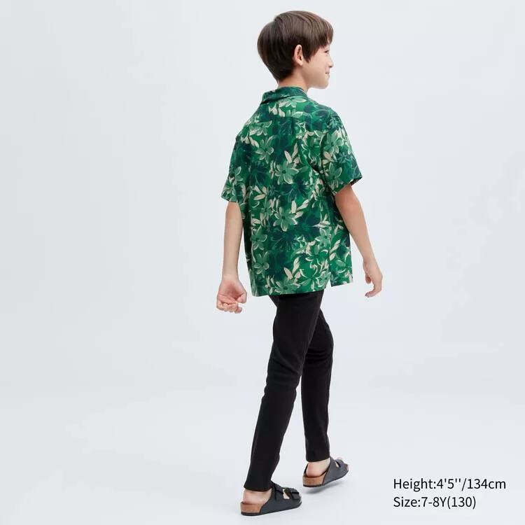 Uniqlo Viscose Printed Open Collar Short Sleeved Kids Shirts Green
