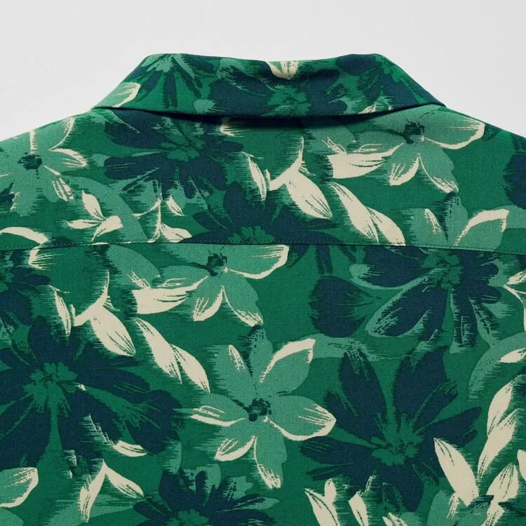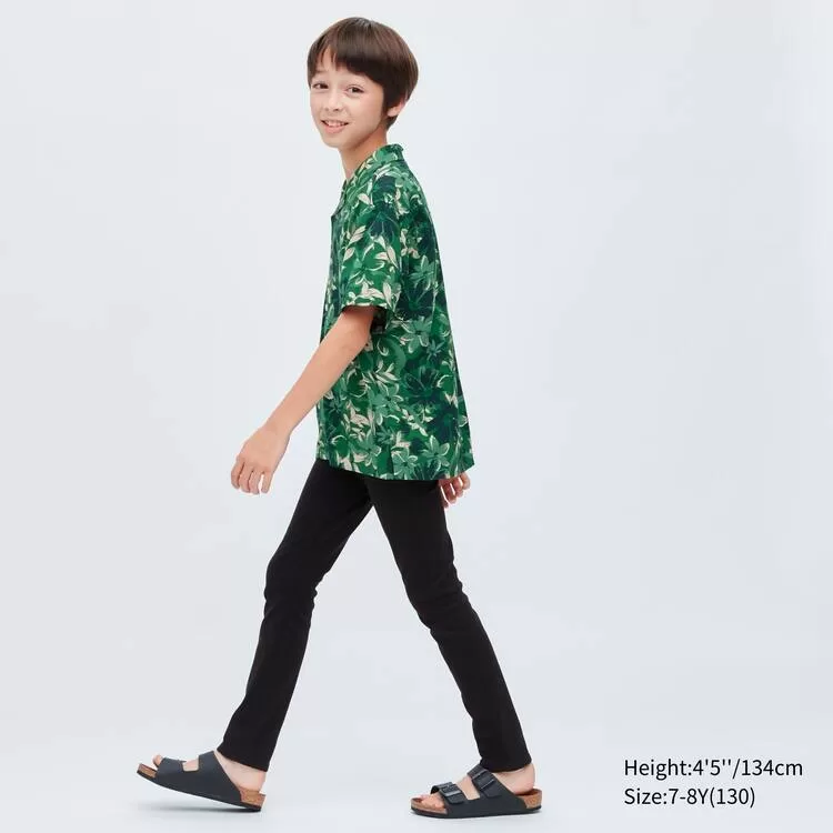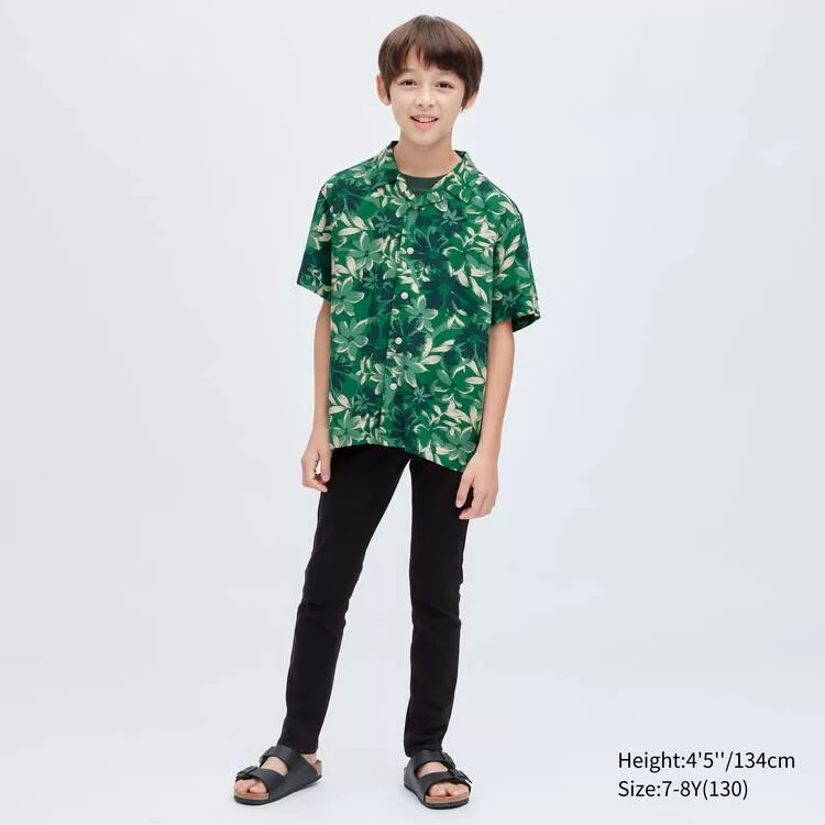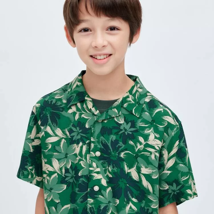 Uniqlo Viscose Printed Open Collar Short Sleeved Kids Shirts Green