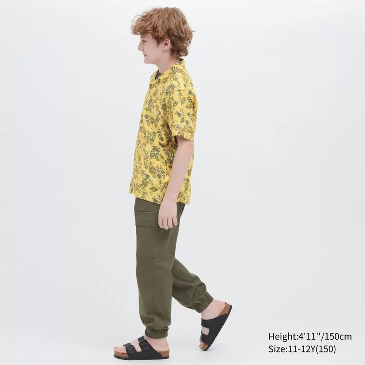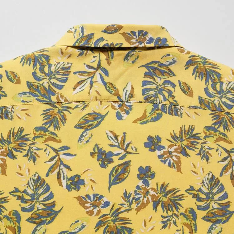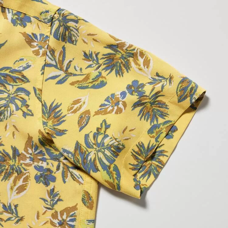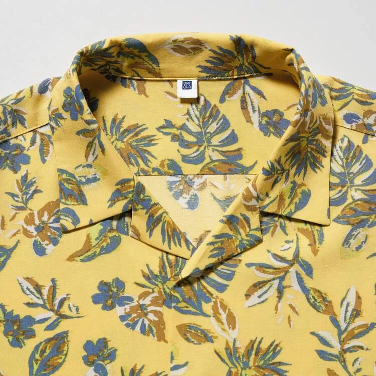 Uniqlo Viscose Printed Open Collar Short Sleeved Kids Shirts Yellow