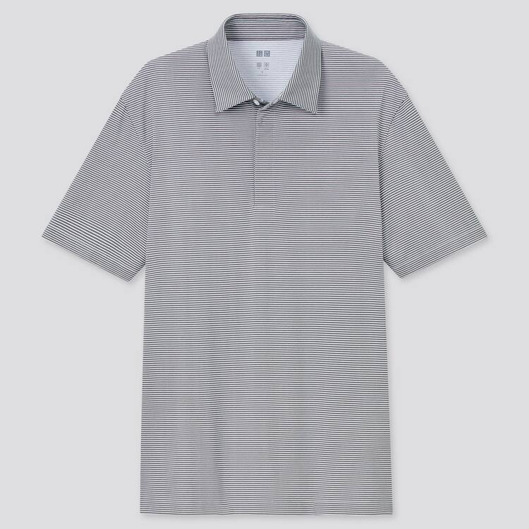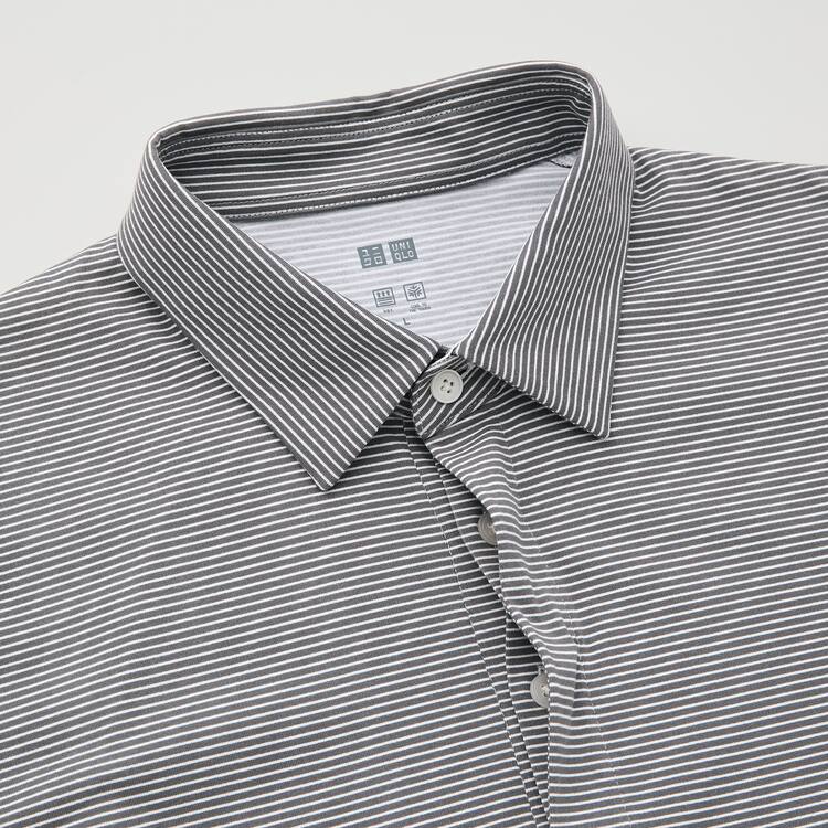 Uniqlo Airism Fly Front Striped Polo Shirt (2021 Season) Men’s Grey