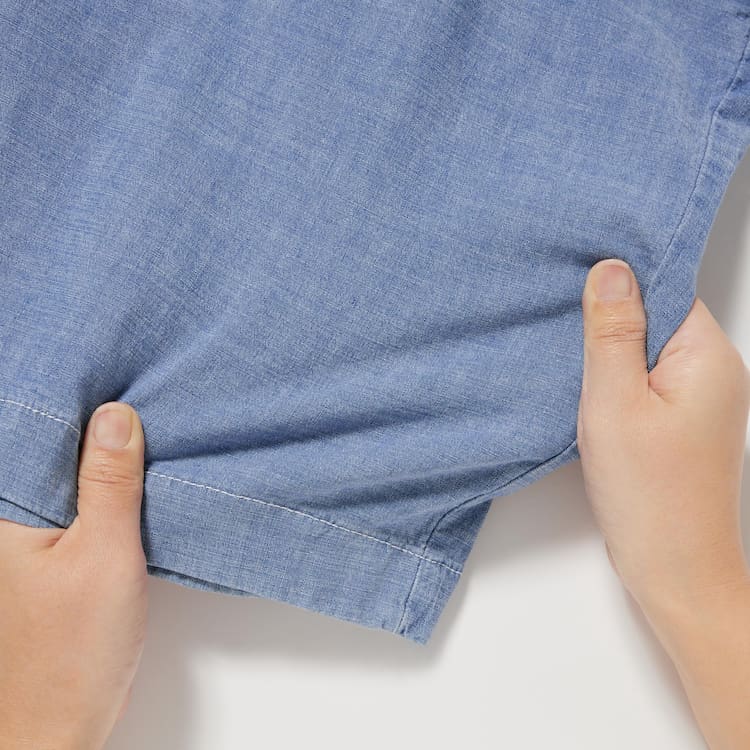 – Cool stretch chambray material made using slub yarns.