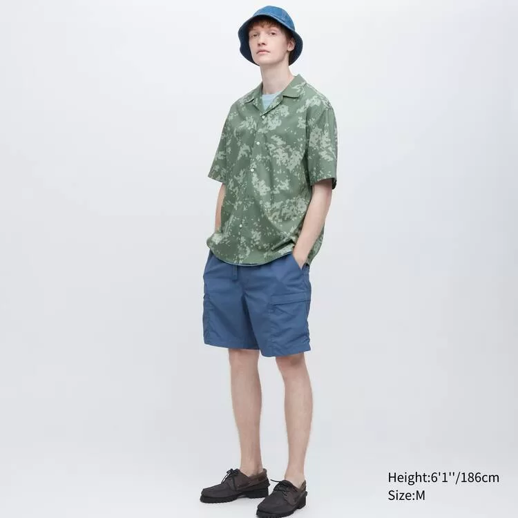 Uniqlo Cotton Blend Casual Printed Short Sleeved (Open Collar) Men’s Shirts Green
