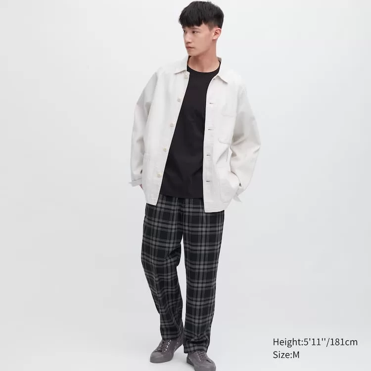 The natural feel of slub yarn in a distinctive check. Versatile pants for indoor and outdoor wear.