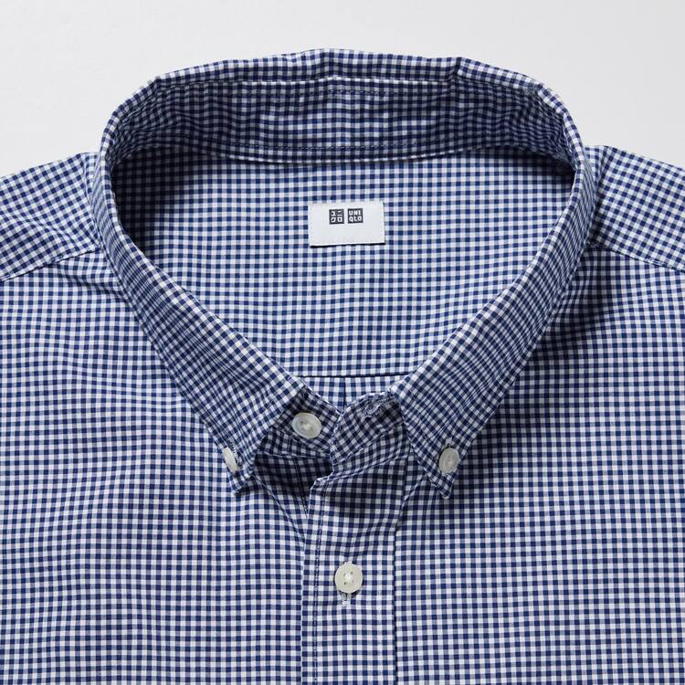 – Casual button-down collar.