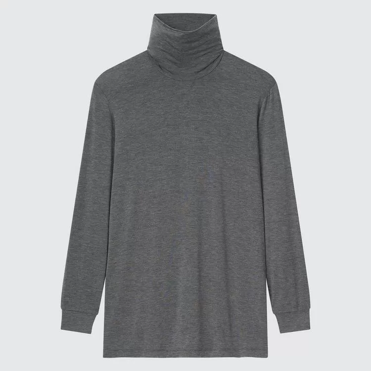Uniqlo Heattech Turtleneck Long Sleeved Thermal Tops Men Dark Gray