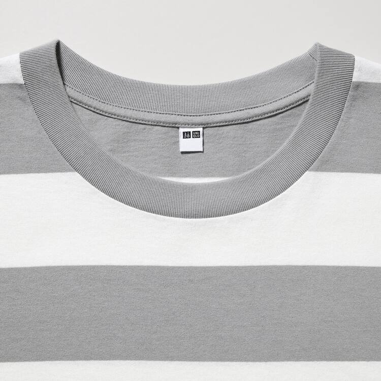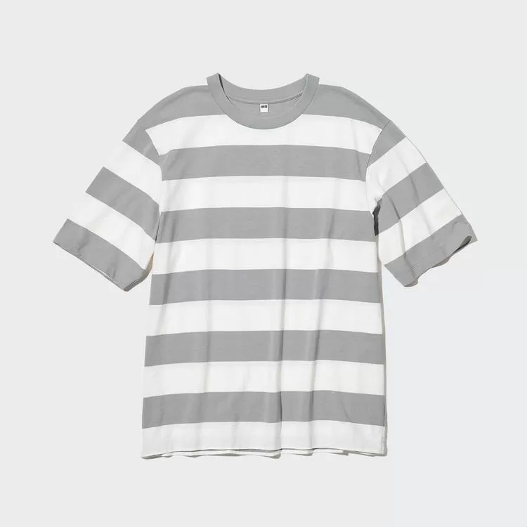 Uniqlo Oversized Striped Half Sleeved T-Shirt Men Grey