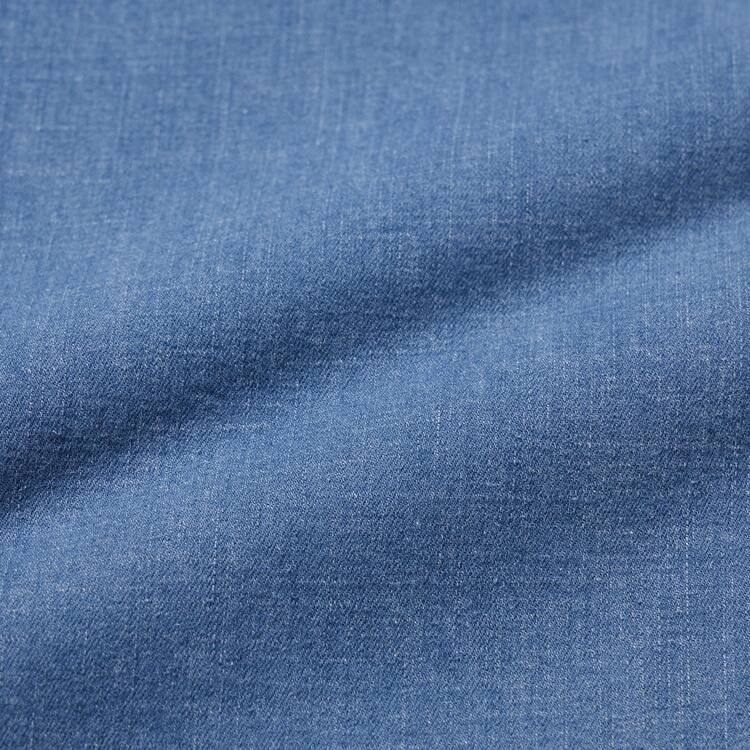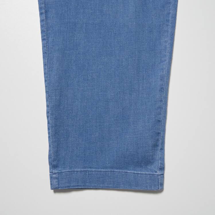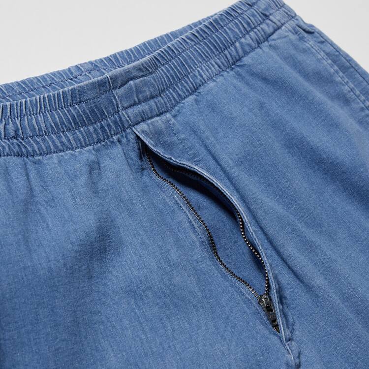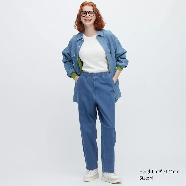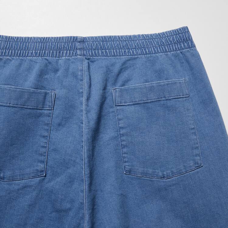 The denim-like color loogs great, and the fit is loose and comfortable. Convenient back pockets on both sides.