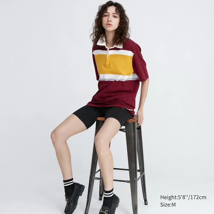 Uniqlo Rugger Striped Short Sleeved Polo Shirt Men Burgundy