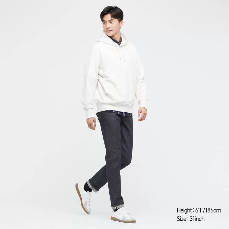 – Rigid indigo denim develops a unique style with wear.