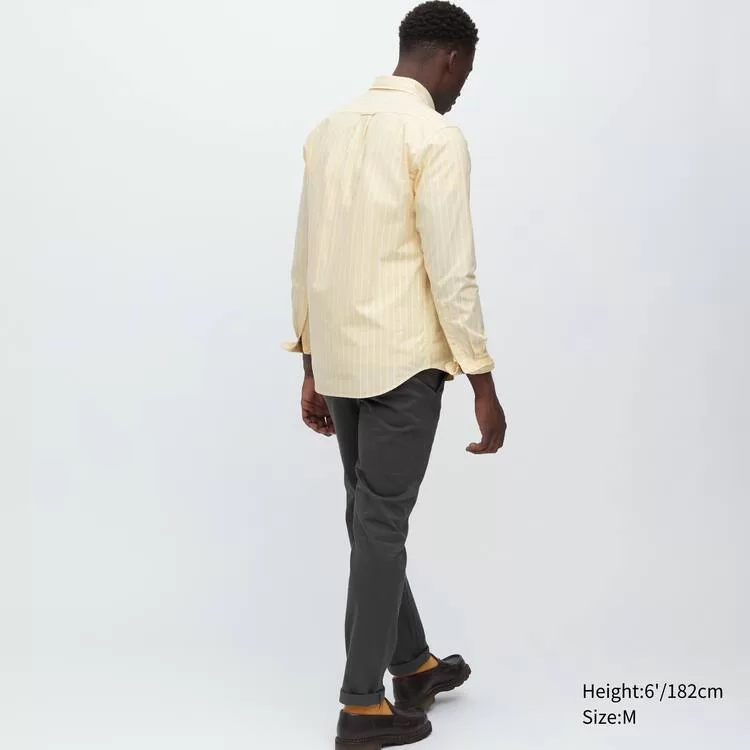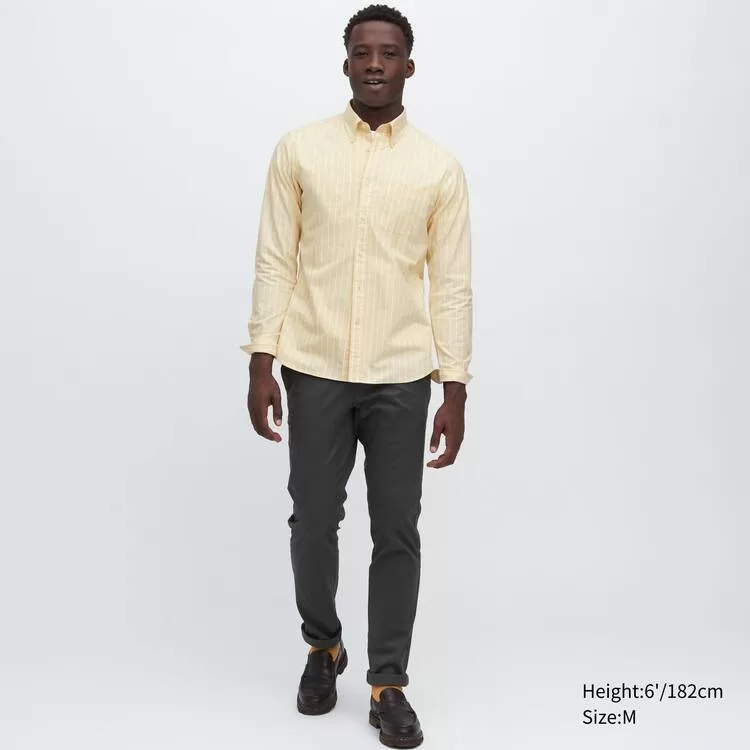 Uniqlo Slim Fit Striped Oxford Shirt Men Yellow