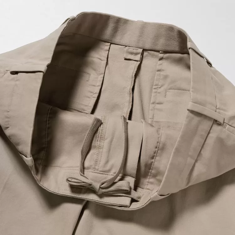 – The waistband is covered with the same fabric as the pants for a neat look with a shirt tucked in.