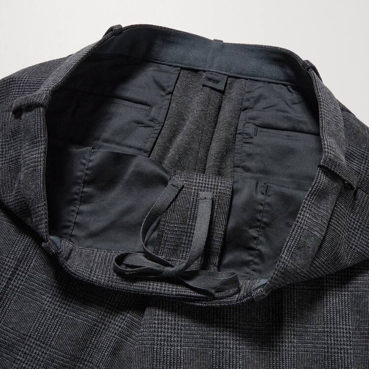 – The waistband is covered with the same fabric as the pants for a neat look with a shirt tucked in.