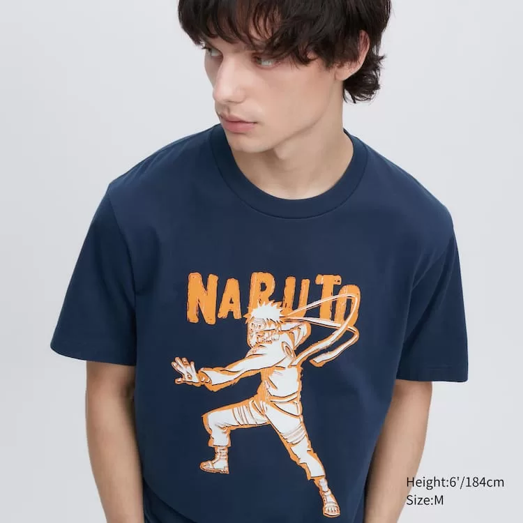 This is the typical pose of the main character, Uzumaki Naruto. With the combination of orange pattern and navy body, we created a vintage inspired style.