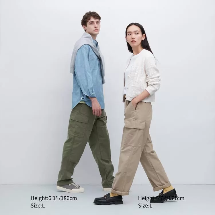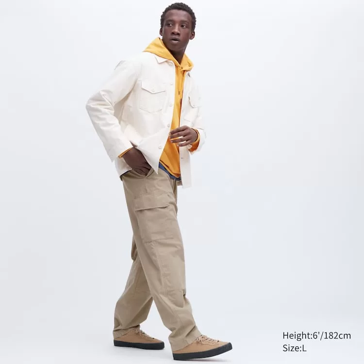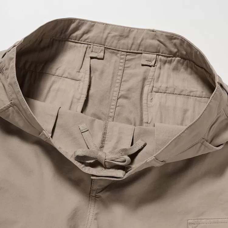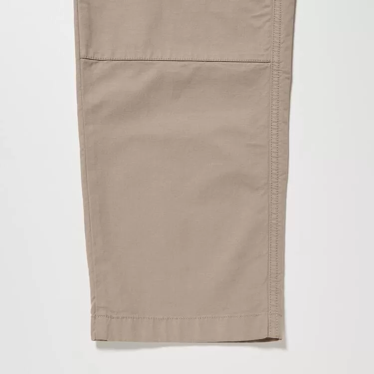 Wide silhouette with neat hems for a comfortable fit. Convenient pockets, like those on work pants.