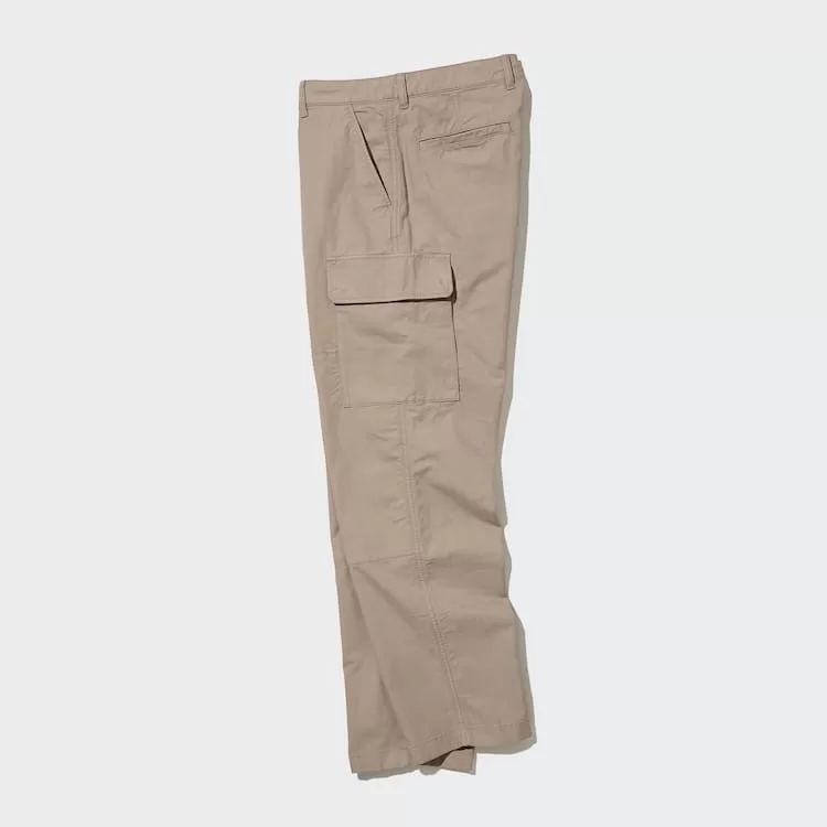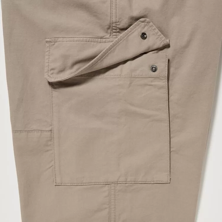 – Wide-fit cargo pants in stretchy cotton dobby fabric.