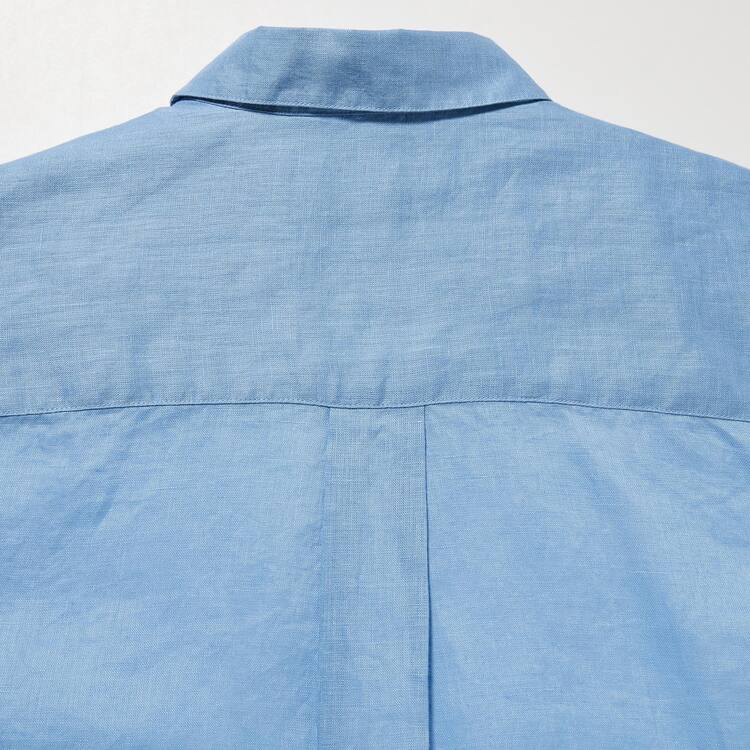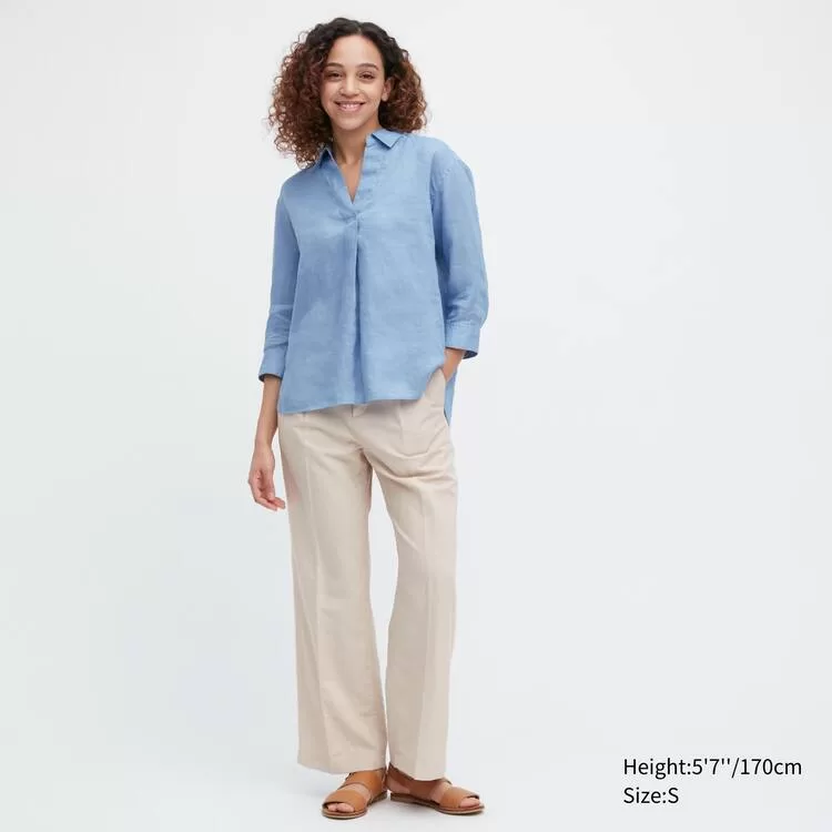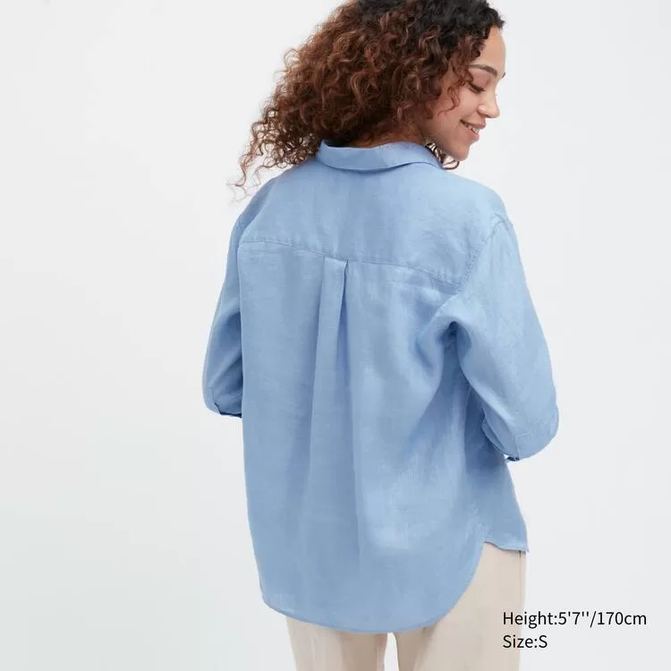 Uniqlo 100% Premium Linen Skipper Collar 3/4 Sleeved Women’s Shirts Blue