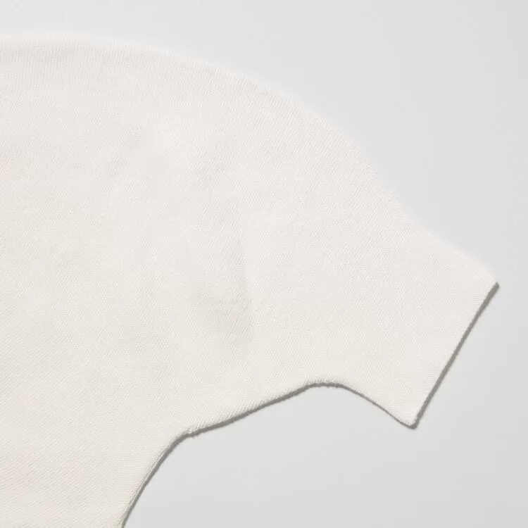 Uniqlo 3d Knit Seamless Cotton Volume Half Sleeved Tops Women White