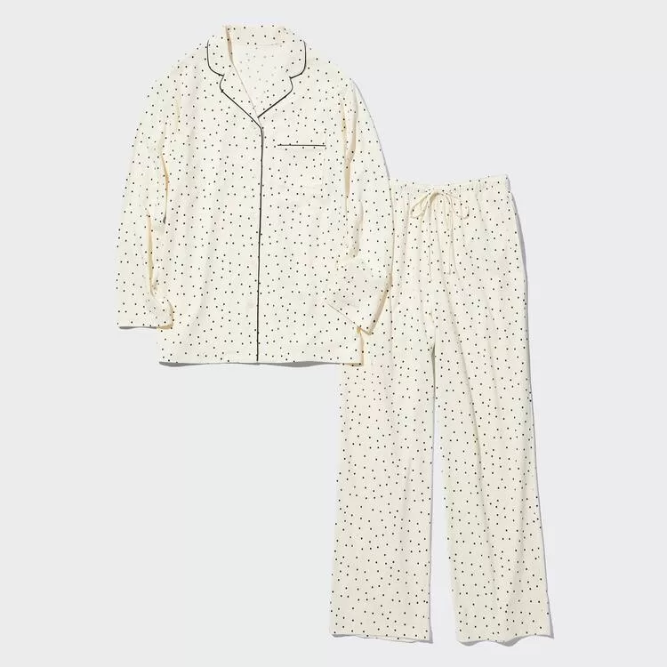Home Uniqlo Women Uniqlo Airism Cotton Dotted Long Sleeved Women’s Homewear White