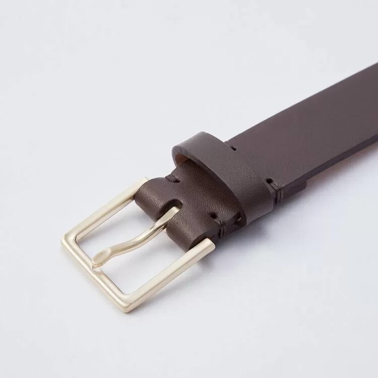 A polished belt featuring premium leather and a matte buckle.