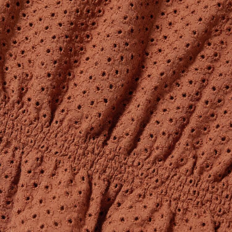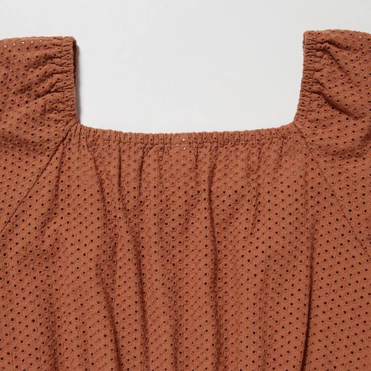 Uniqlo Cotton Embroidered Square Neck Short Sleeved Blouses Women Brown