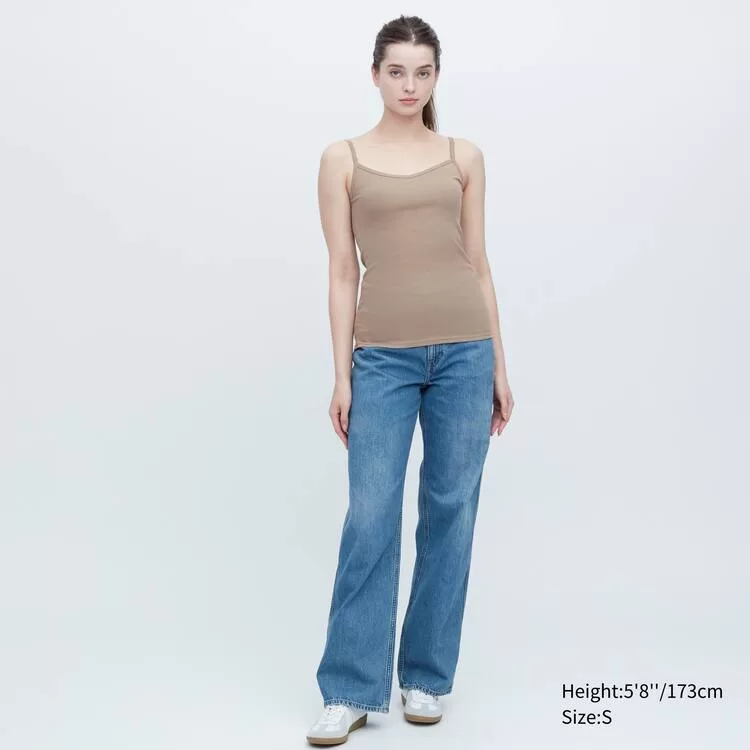 Uniqlo Cotton Lace Camisole Tops Women Khaki