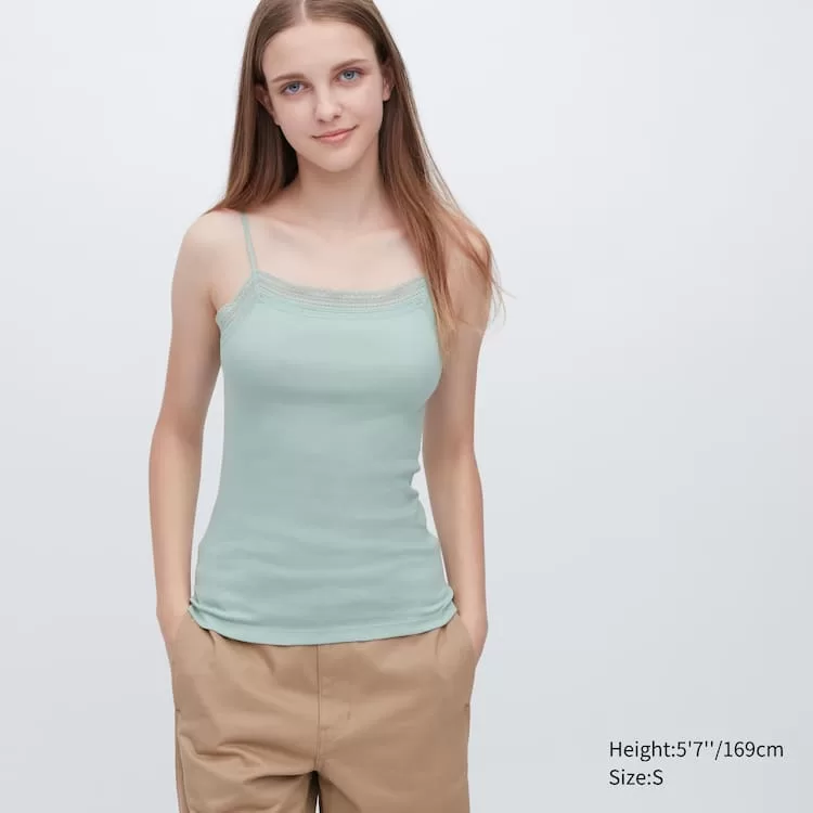 Uniqlo Cotton Ribbed Lace Camisole Vest Women Blue