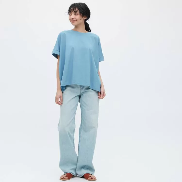 Home Uniqlo Women Uniqlo Cotton Sleeve T-shirt Women Blue