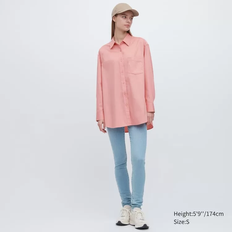 Uniqlo Cotton Twill Oversized Long Sleeved Women’s Shirts Pink