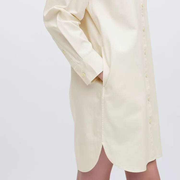 – A timeless shirt dress in a short length with a lovely curved shirttail hem.