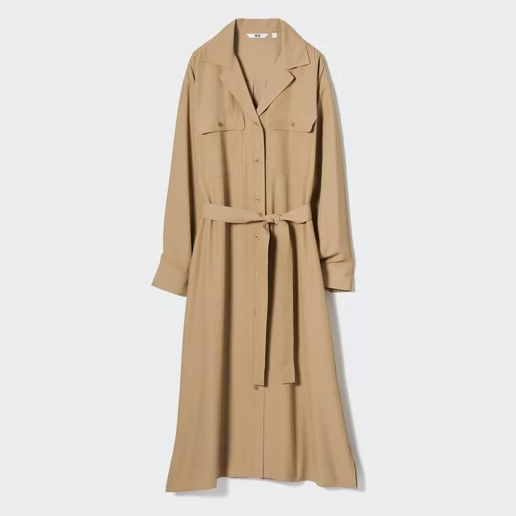 Uniqlo Easy Care Long Sleeved Dress Women Beige