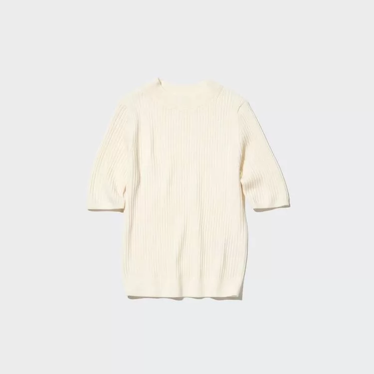 Uniqlo Extra Fine Merino Ribbed Mock Neck Women’s Knitwear White