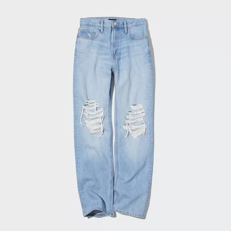 Uniqlo High Rise Straight Leg Distressed Women’s Jeans Blue