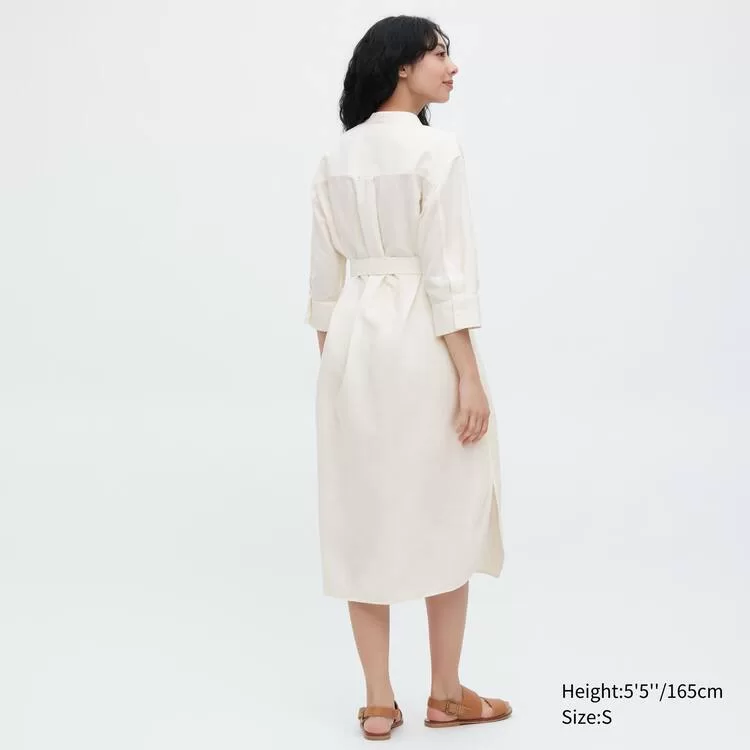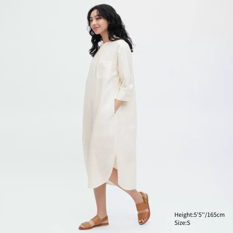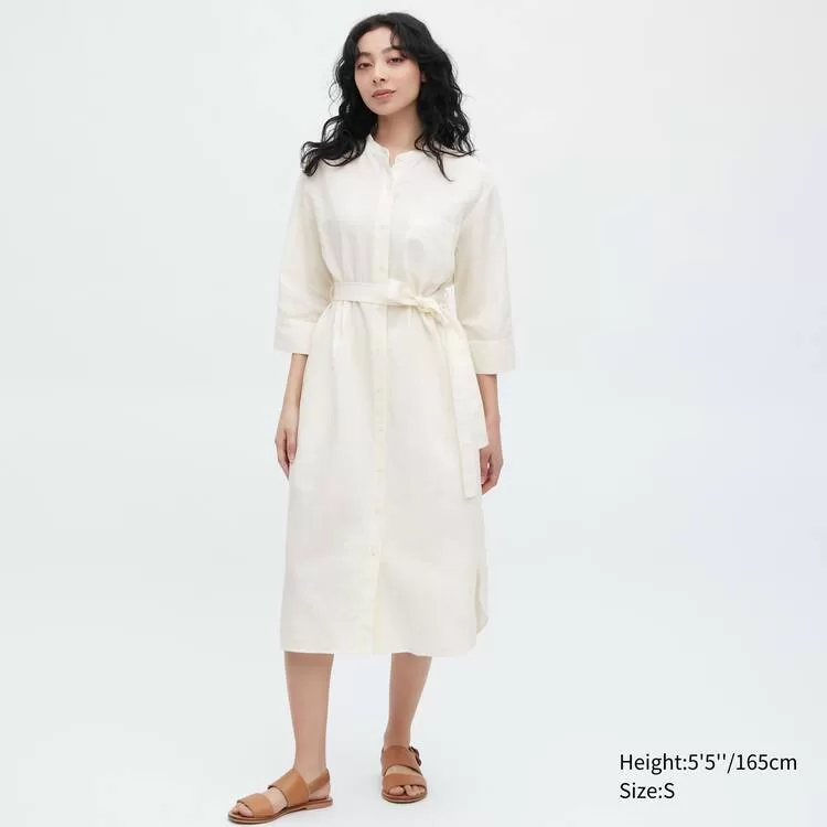Uniqlo Linen Blend 3/4 Sleeved Dress Women White