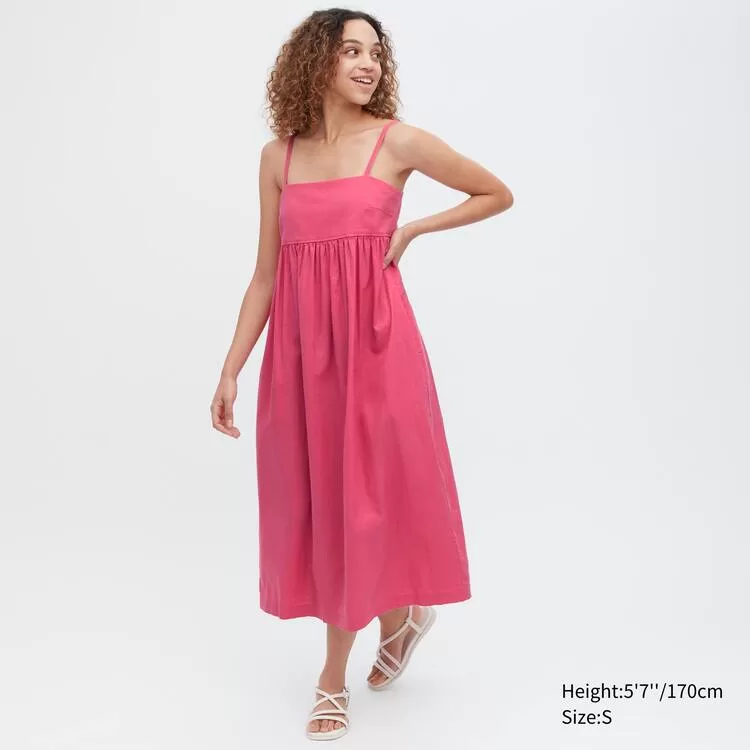 Uniqlo Linen Blend Gathered Camisole Dress Women Pink