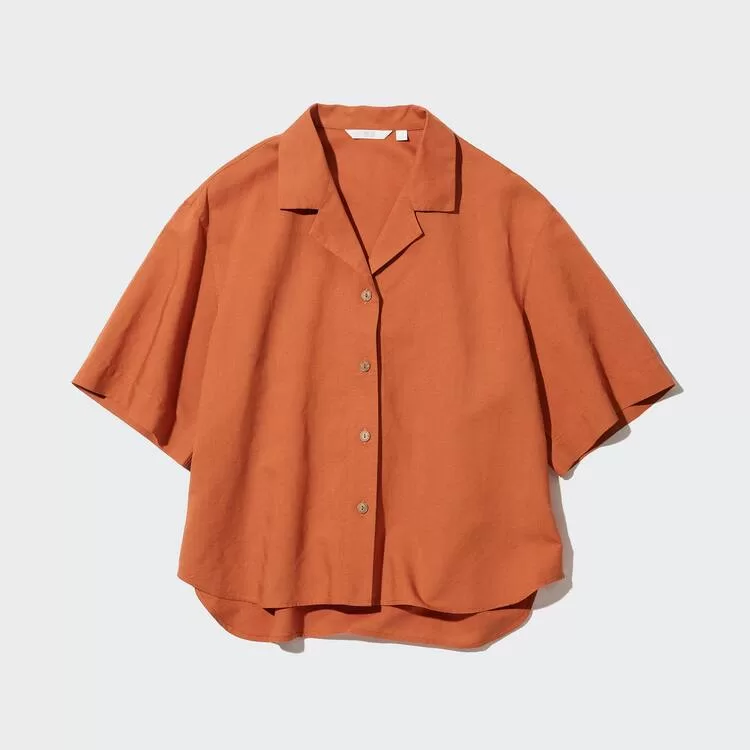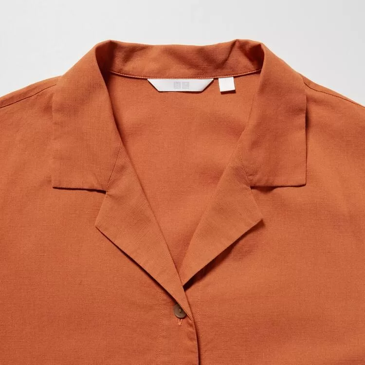 – Breezy open collar design.