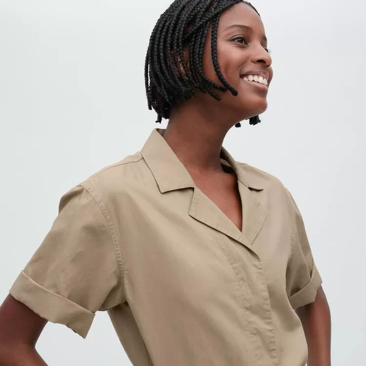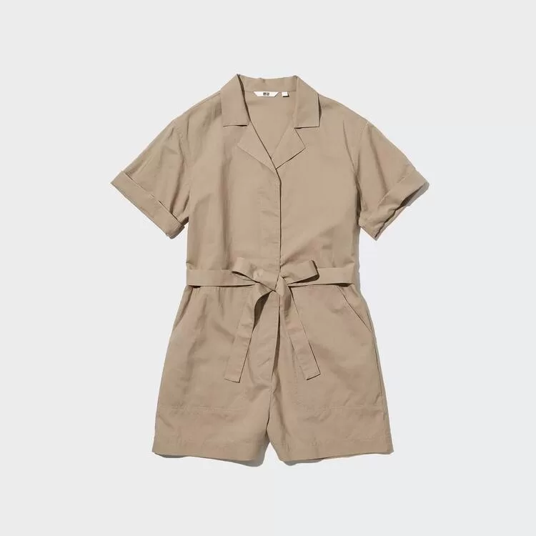 Uniqlo Linen Blend Short Sleeved Romper Dress Women Grey