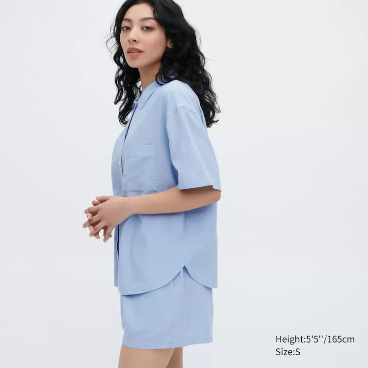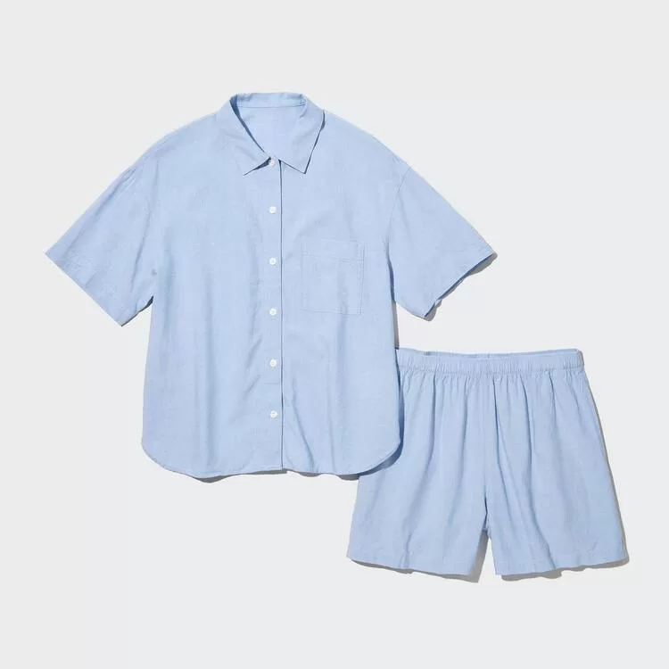 Home Uniqlo Women Uniqlo Linen Blend Short Sleeved Set Women’s Homewear Blue
