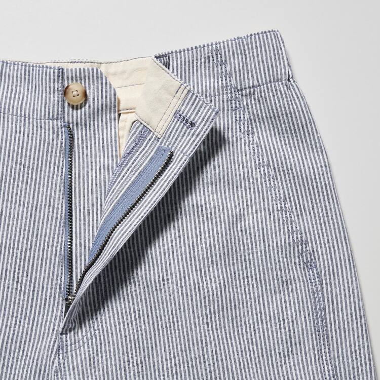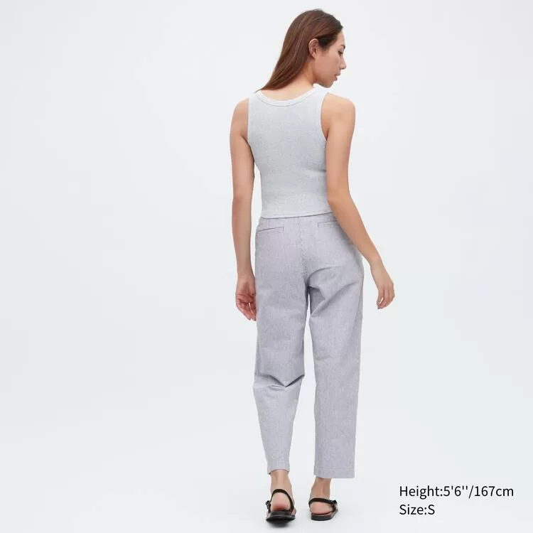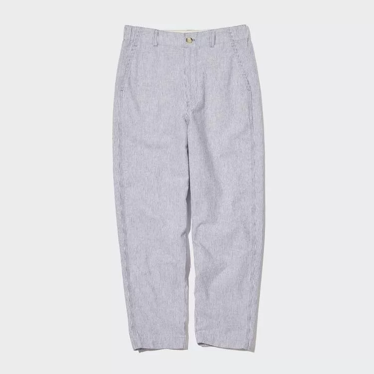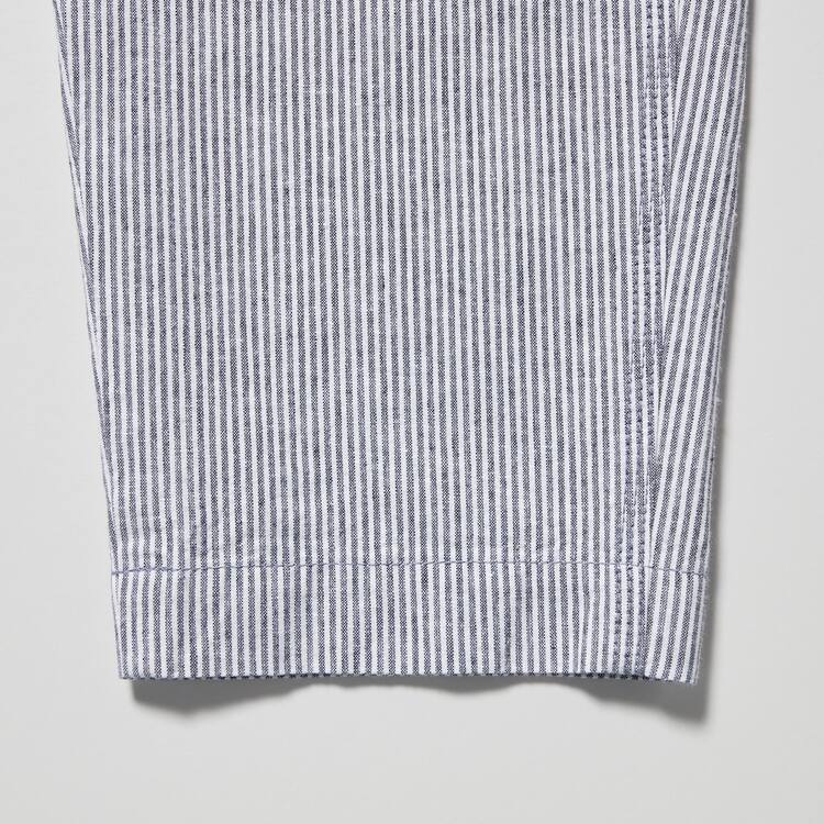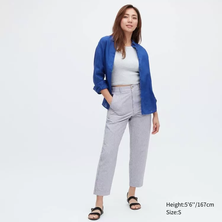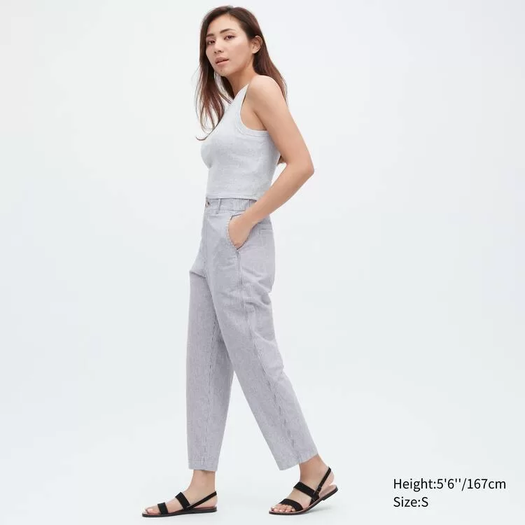 Home Uniqlo Women Uniqlo Linen Cotton Blend Striped Tapered Pants Women Blue