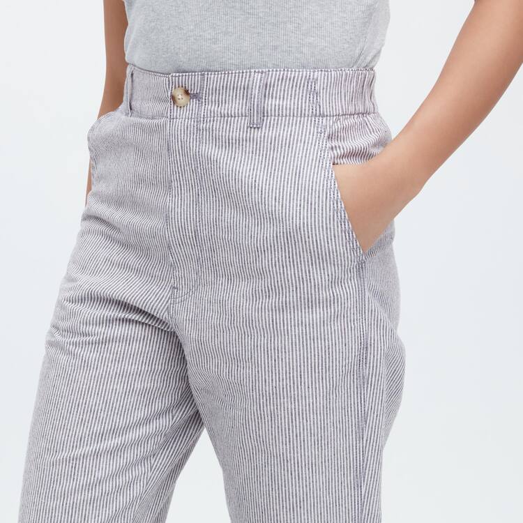 Uniqlo Linen Cotton Blend Striped Tapered Pants Women Blue